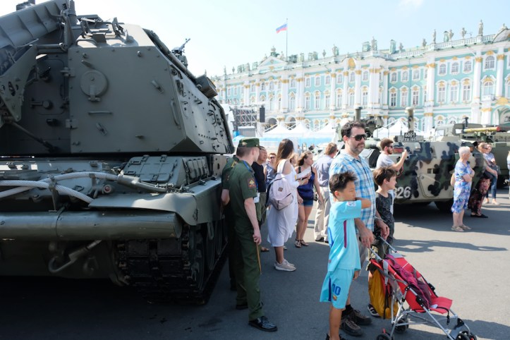 L’auberge ne paie pas de mine, et nous y sommes plutôt à l’étroit. Elle a toutefois un avantage de taille, celui d’être tout près de l’Ermitage (et une cuisine, condition sine qua none). Dans la cour de l’Ermitage nous attend une fanfare en pleine répétition. L’effervescence qui y règne annonce, nous l’apprendrons plus tard, l’approche de la journée de la marine, un événement très populaire qui est en fait une gigantesque démonstration de la puissance des effectifs maritimes de la Fédération et de ses alliés.